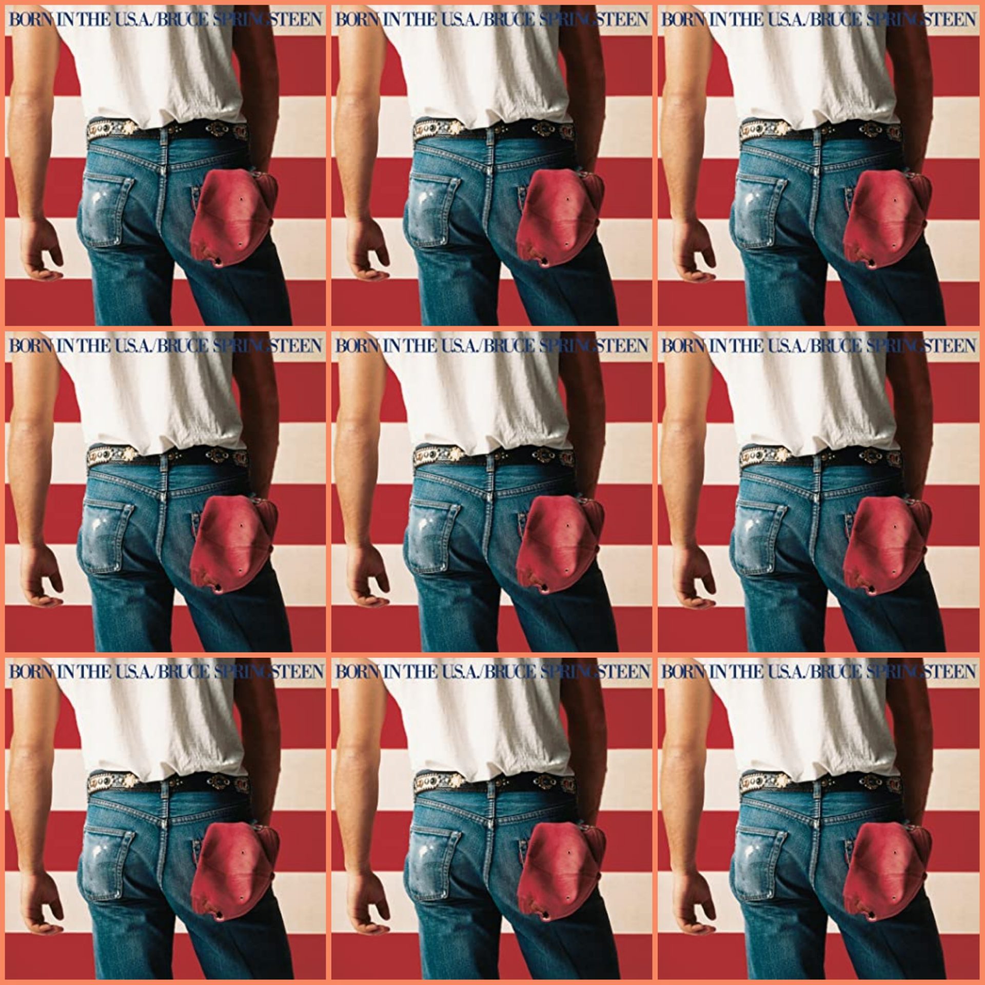 An American flag background and Bruce’s ass in blue jeans with a red cap in his pocket was the record cover for that album. That was actually the first vinyl record he remembered seeing from his childhood. That was also the first time he tried Jack Daniel’s. He was probably 4, maybe 5, and his dad was listening to that album. The dust cover was laying on the table next to a tumbler of soda.